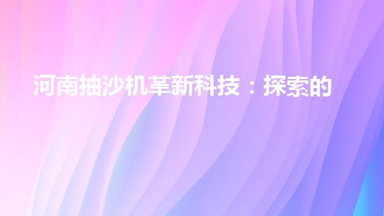 湛江抽沙機《創新科技:顛覆沙地開發的新型抽沙設備革命?》